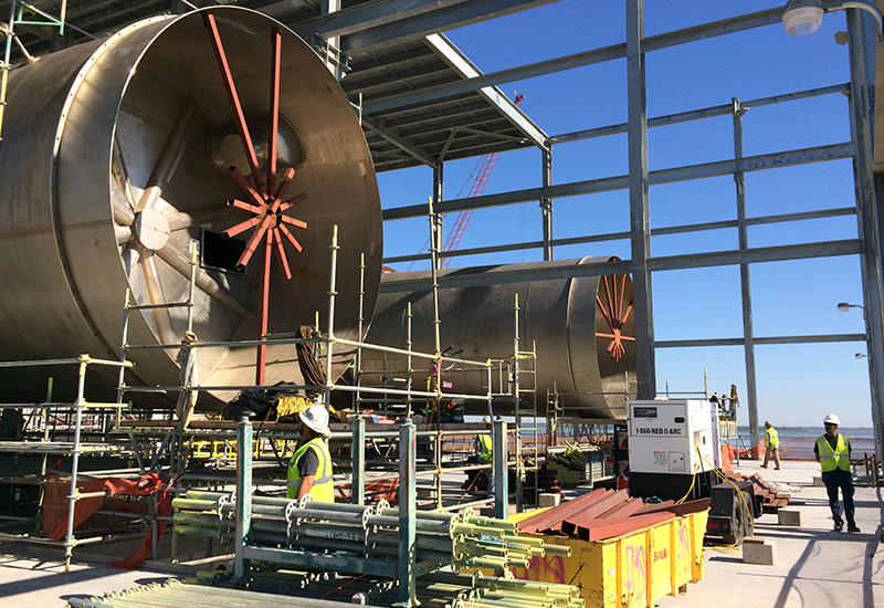 Rilievo, tracciamenti, a Houston U.S.A. per allineamento assi rulli per rotazione del forno in impianto per produzione plastiche.