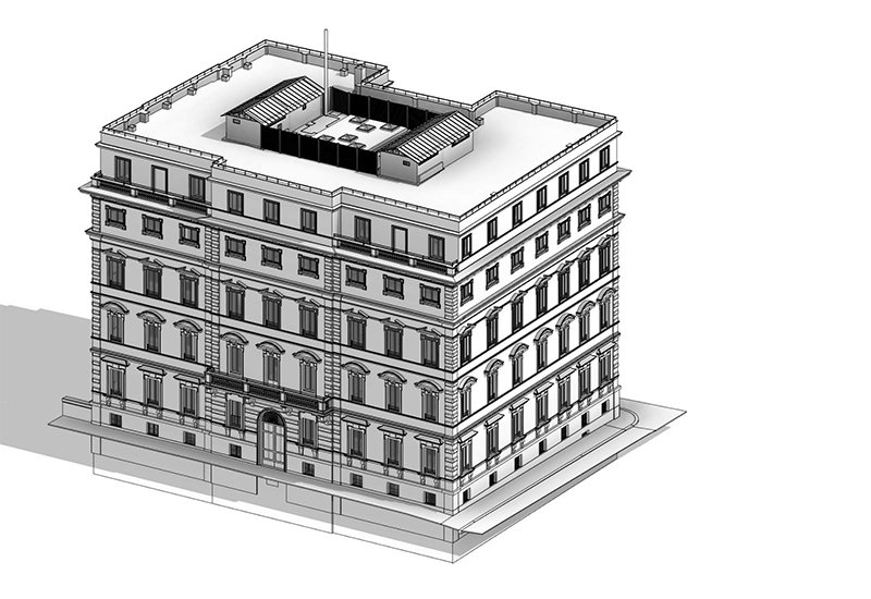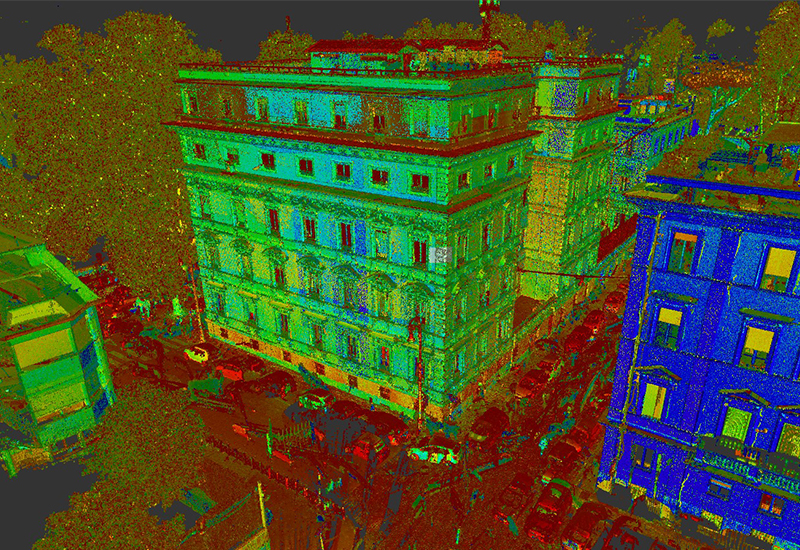 Rilievo edificio storico in Roma, per circa 6.100 mq, con strumentazione Laser Scanner.