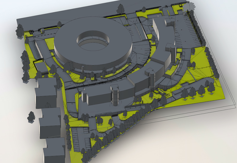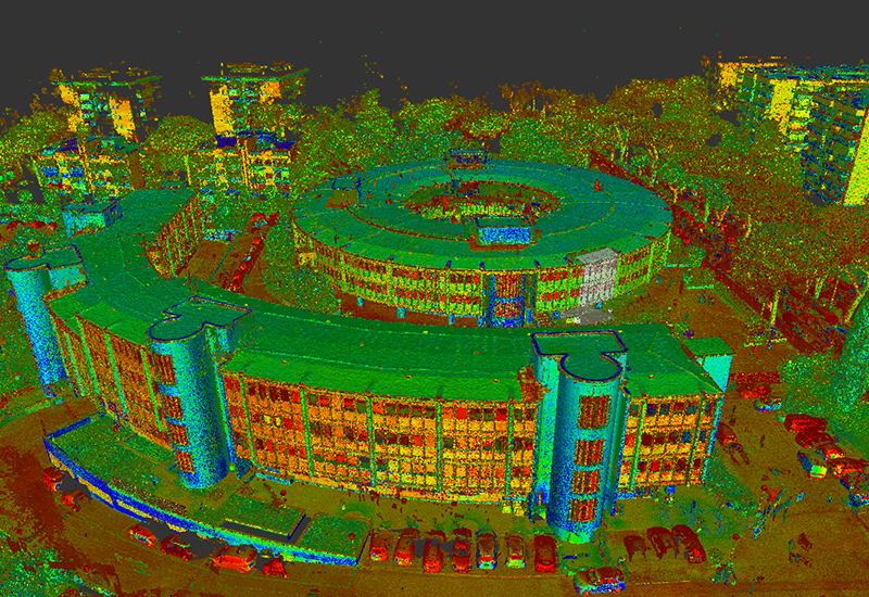Rilievo di area ed edificio ad uso uffici in Roma, per circa 24.000 mq, con strumentazione Laser Scanner e APR.